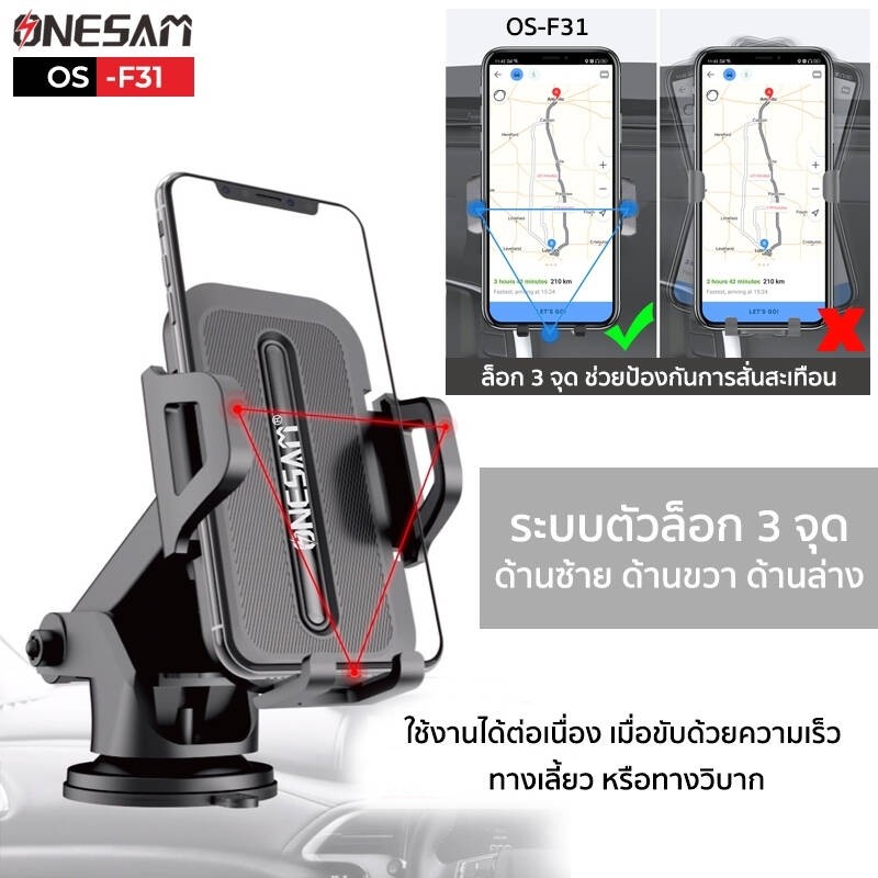 Onesam Modèle OS-F31, Support De Téléphone Portable, Support De Voiture, Car Mount, Support De Pare-Brise Et Tableau De Bord, Rotation A 360° (Noir)