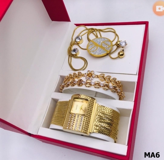 Pack 4 pièces ensemble Montre Bague Collier Fétiche pour Femme