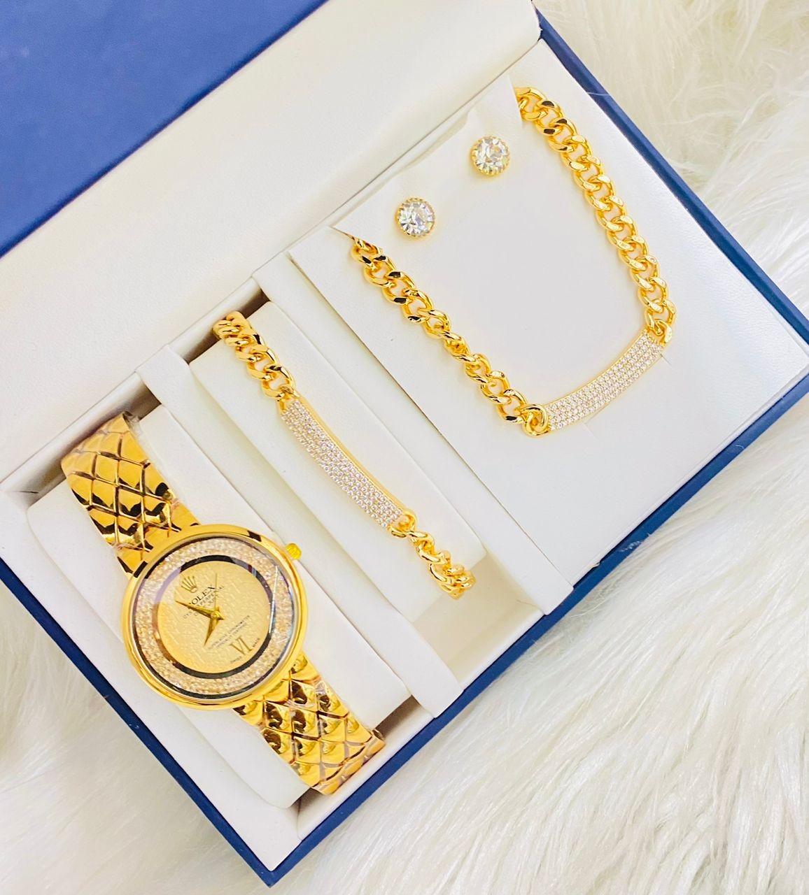 Pack Montre - Collier - Bague - Bracelet Pour Les Femmes De Qualité Supérieure Très Jolie Pour Les Grandes Cérémonies De Mariages Des Cadeaux