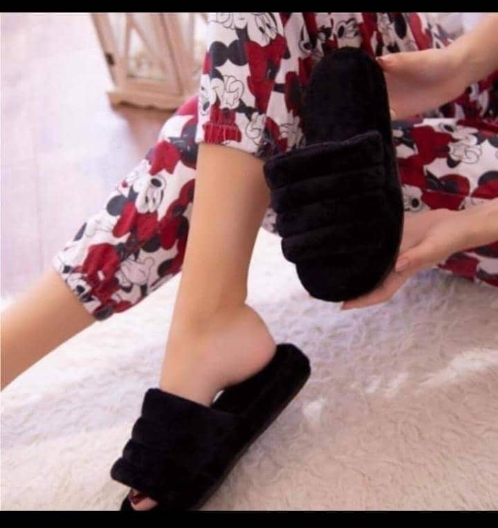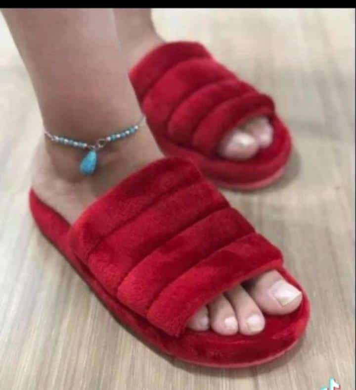 • Pantoufle pour femme en fourrure écologique douce et fond souple. Un chausson très léger pour la maison.