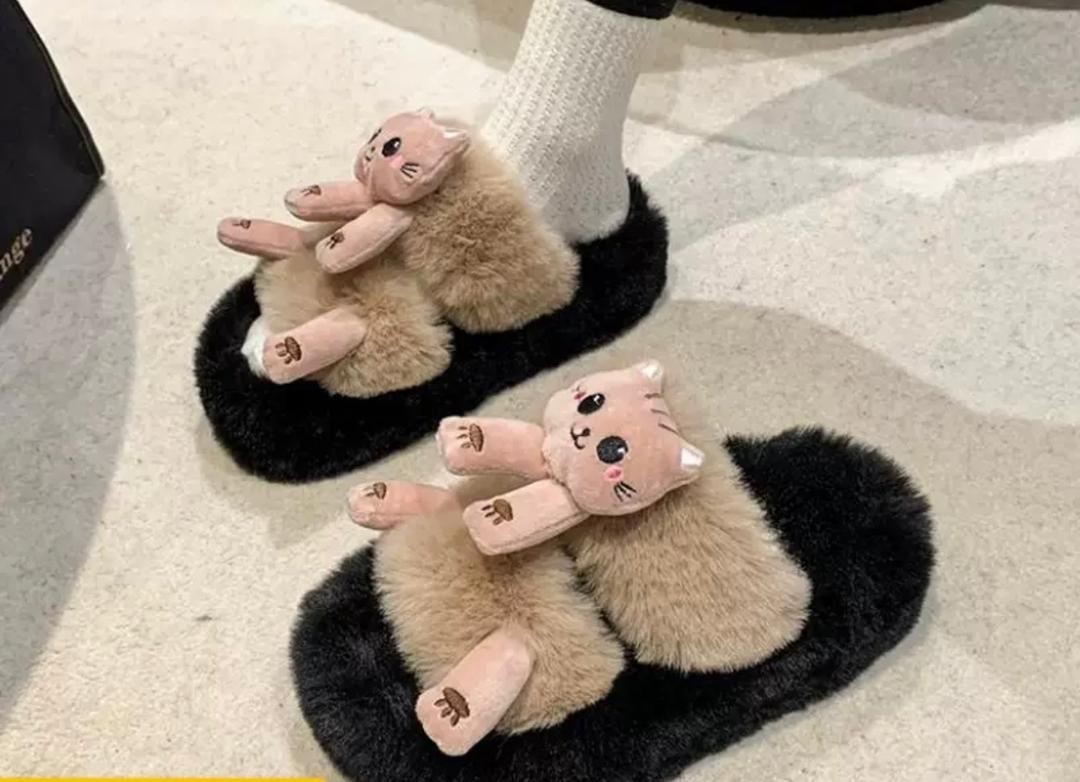 Pantoufles d'hiver à la mode, mignonnes, chaudes, non fatigantes, rehaussantes, antidérapantes, tout cela est synonyme de cette
