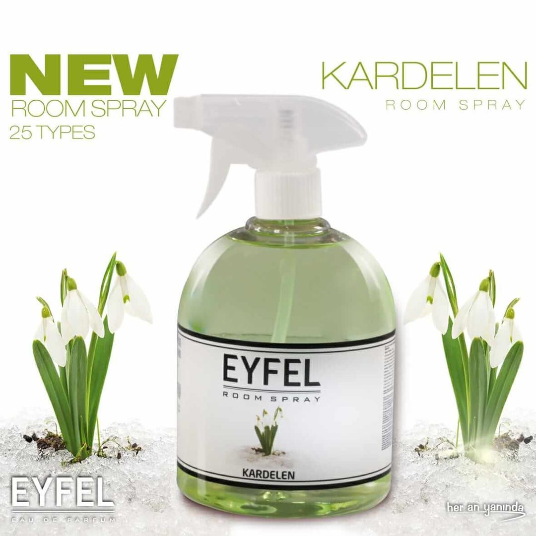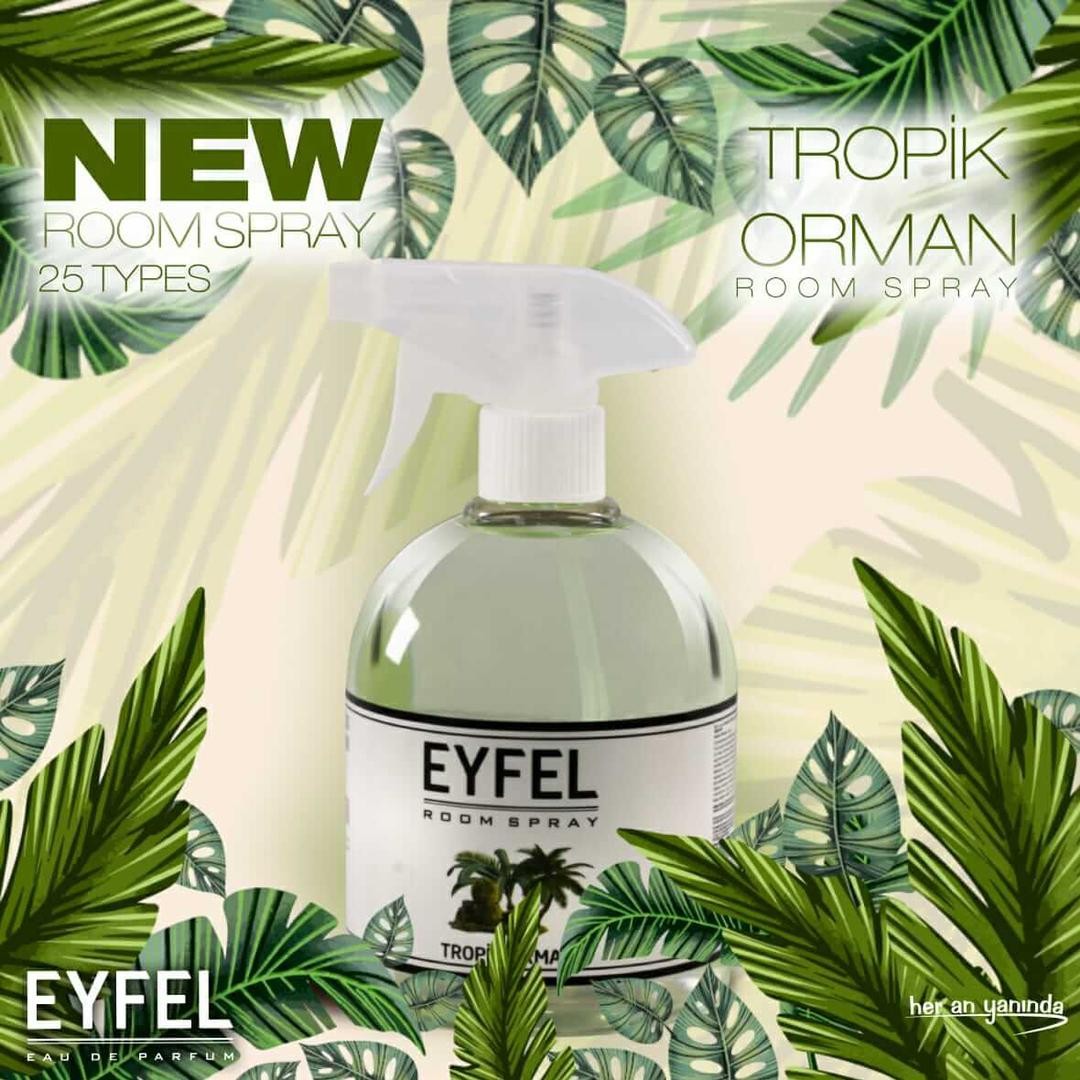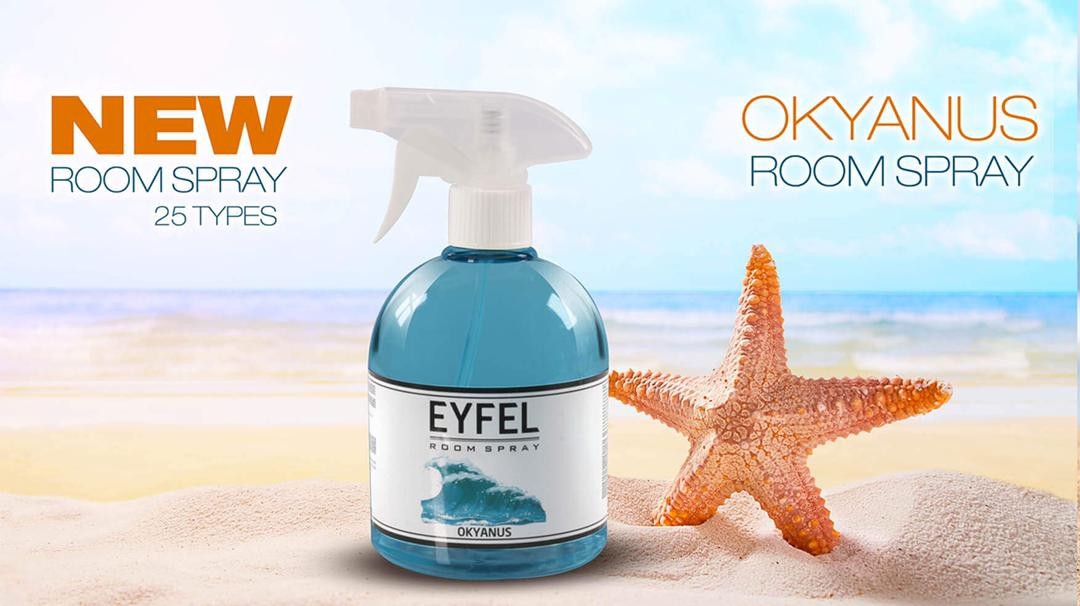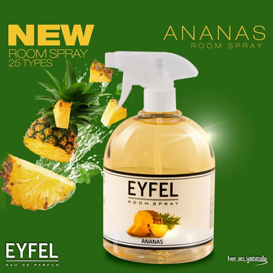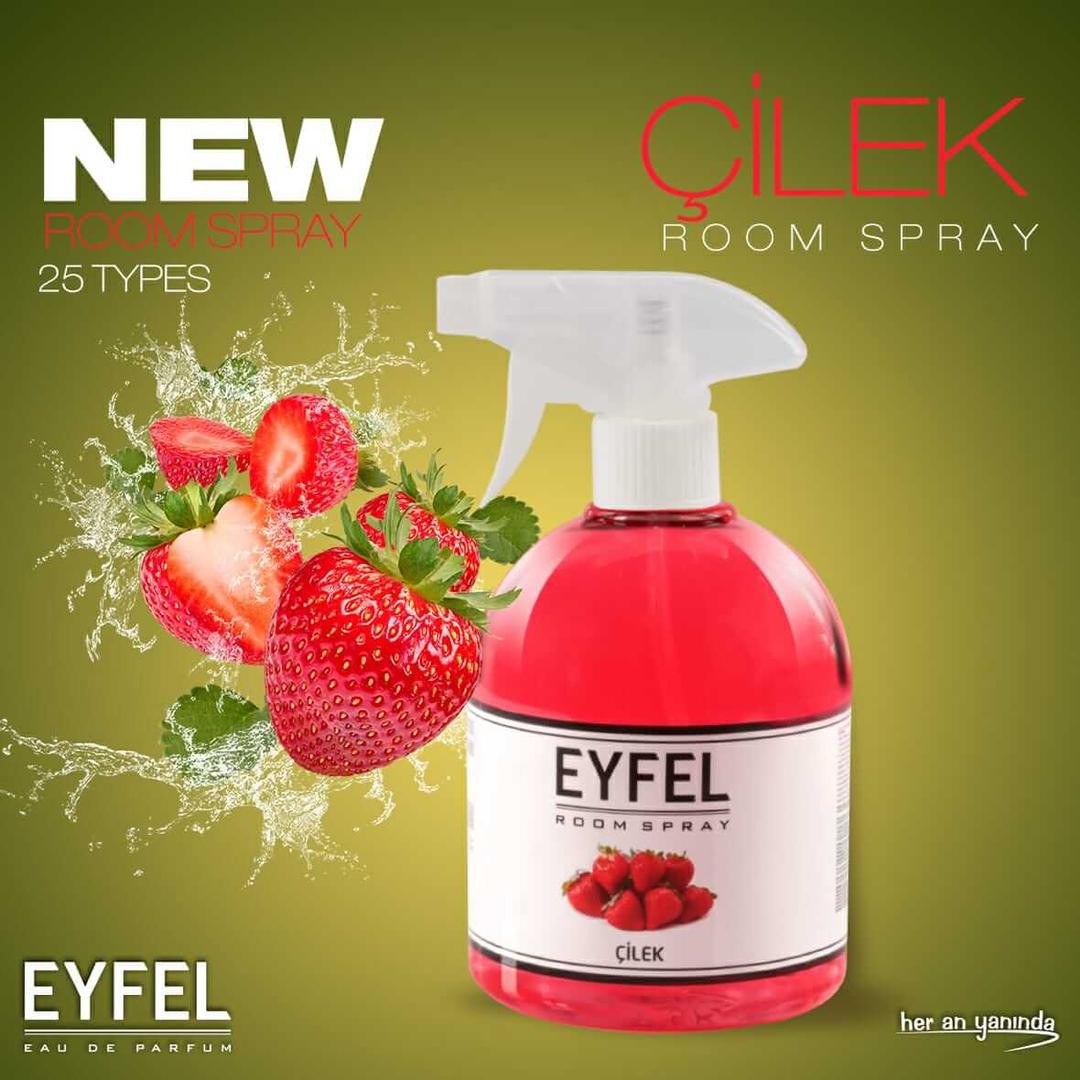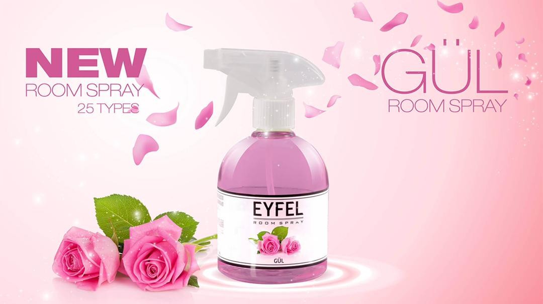 Parfum Room Spray Eyfel Bogurtlen Tropik Kavun Seftali Poudra, Gul, Vanilya, Okyanus beyazza Sakiz Kardelen Deniz Ananas Mango Kiraz Karamel çilek Lavanta 500ml