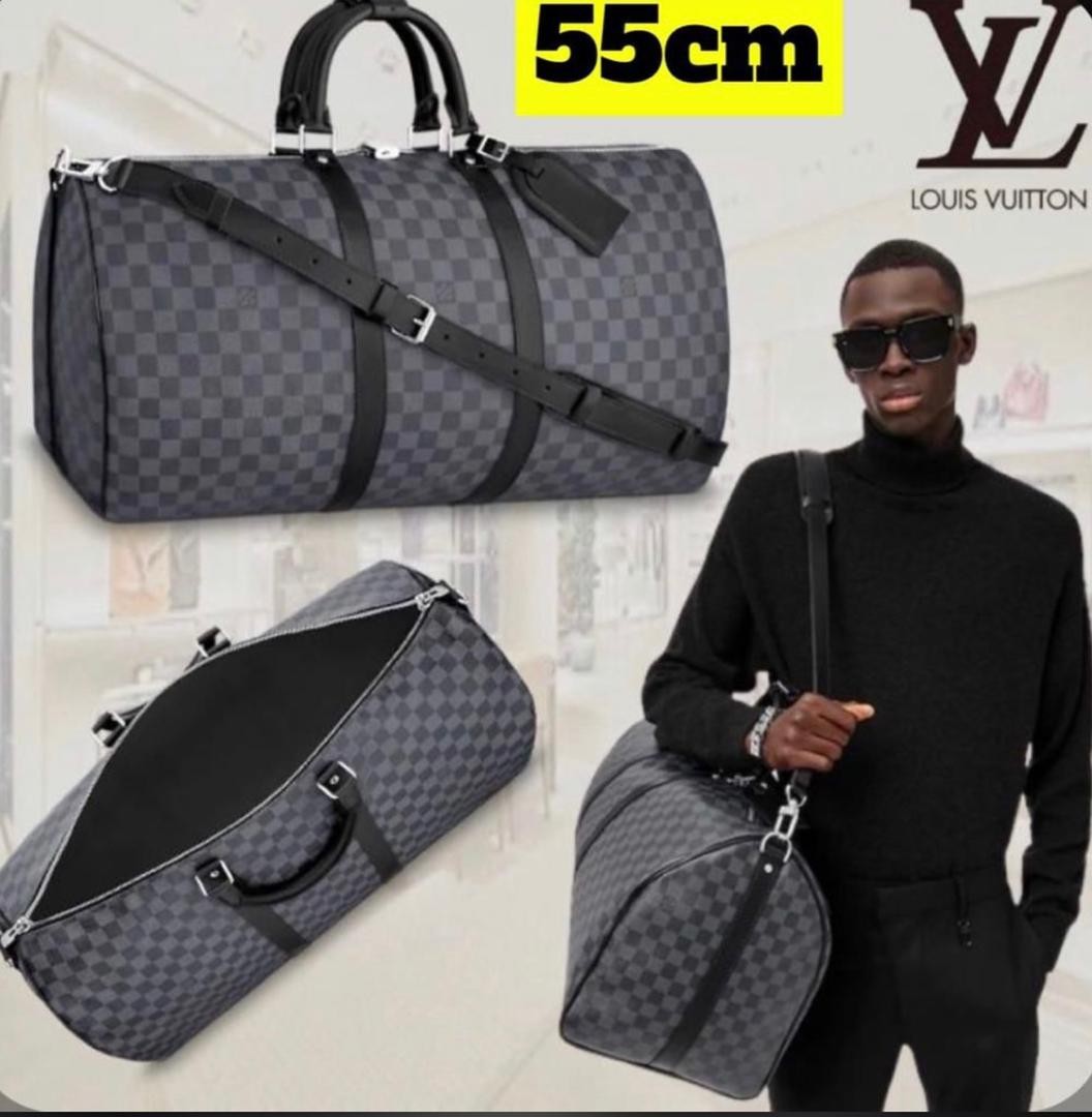 Sac De Voyage Keepall Bandoulire En Cuir Noir Louis Vuitton Vintage 55 Cm