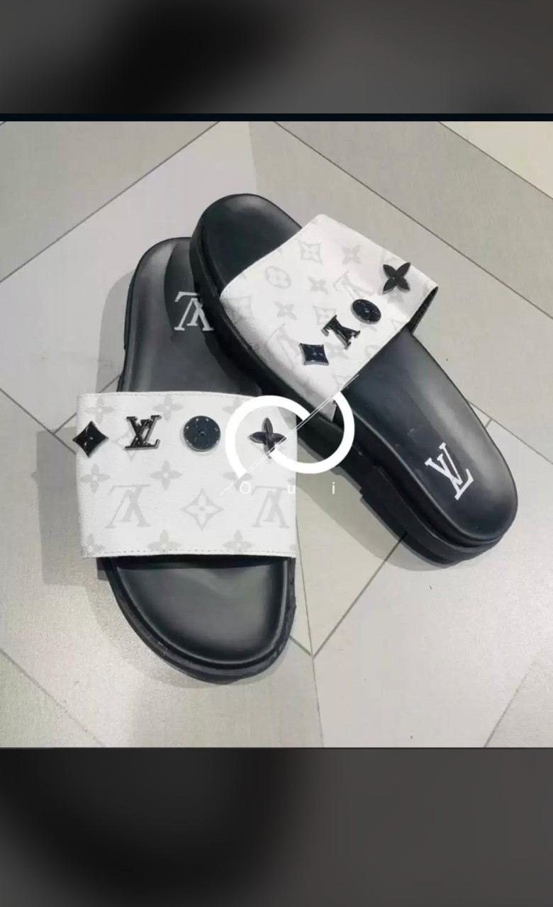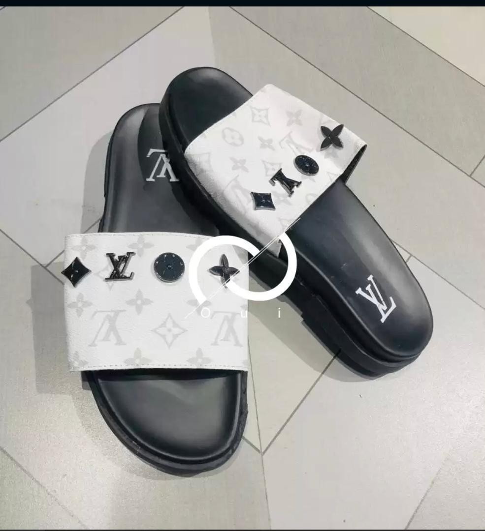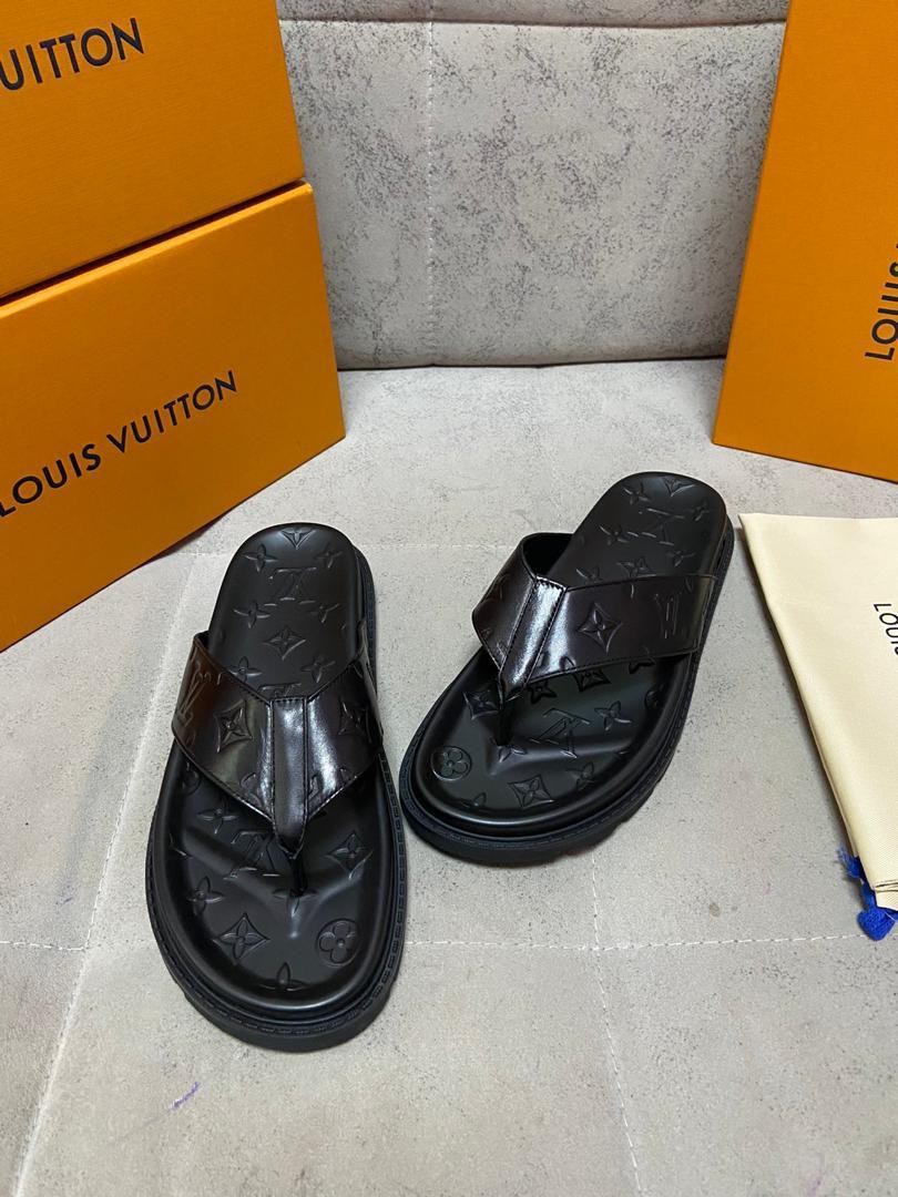 • Confectionnée en cuir de veau noir, cette tong Mirabeau légère se prête aux tenues d'été. Elle présente une semelle intérieure anatomique confortable et une semelle extérieure en gomme souple. Ce soulier se distingue par ses détails raffinés, notamment un accessoire LV Initiales en métal argenté.