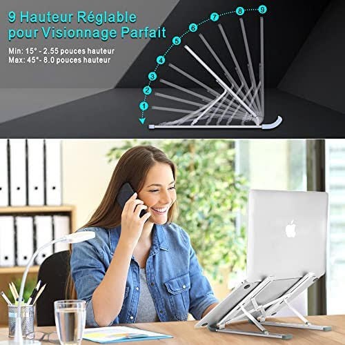 Support Ordinateur Portable, Support PC Portable à 9 Niveaux Réglables En Aluminium Ventilé Pour 10” - 15.6” PC Portable