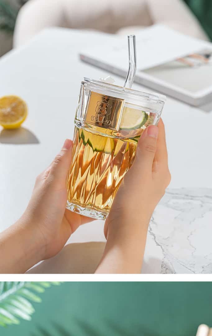 • La tasse à boire est faite de verre à haute teneur en borosilicate, avec couvercle en bois et paille en verre, réutilisable et facile à nettoyer.