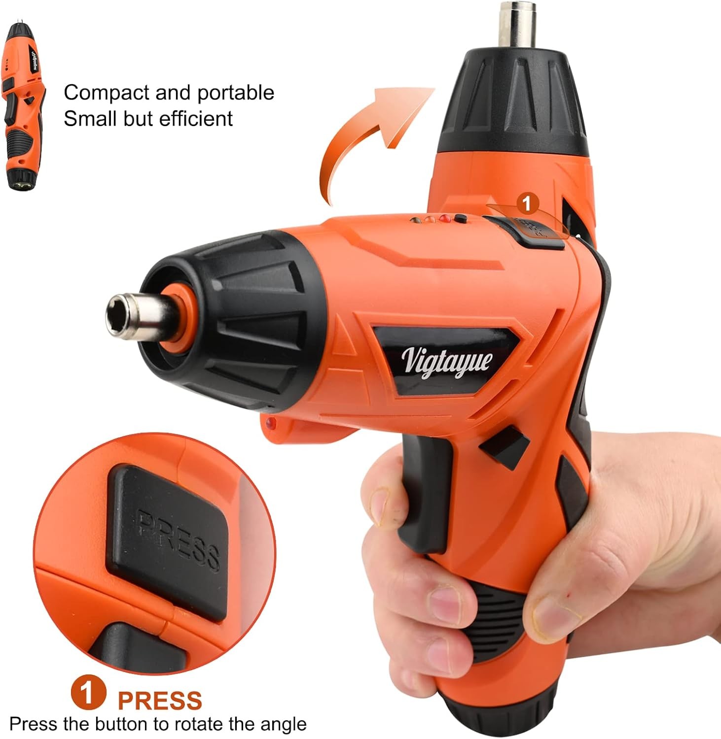 • Facile à utiliser : tournevis électrique sans fil Vigtayue de couleur orange que vous pouvez toujours trouver. Facile à ranger et à utiliser avec un étui léger ajusté. Conçu pour vos projets quotidiens à la maison et de bricolage