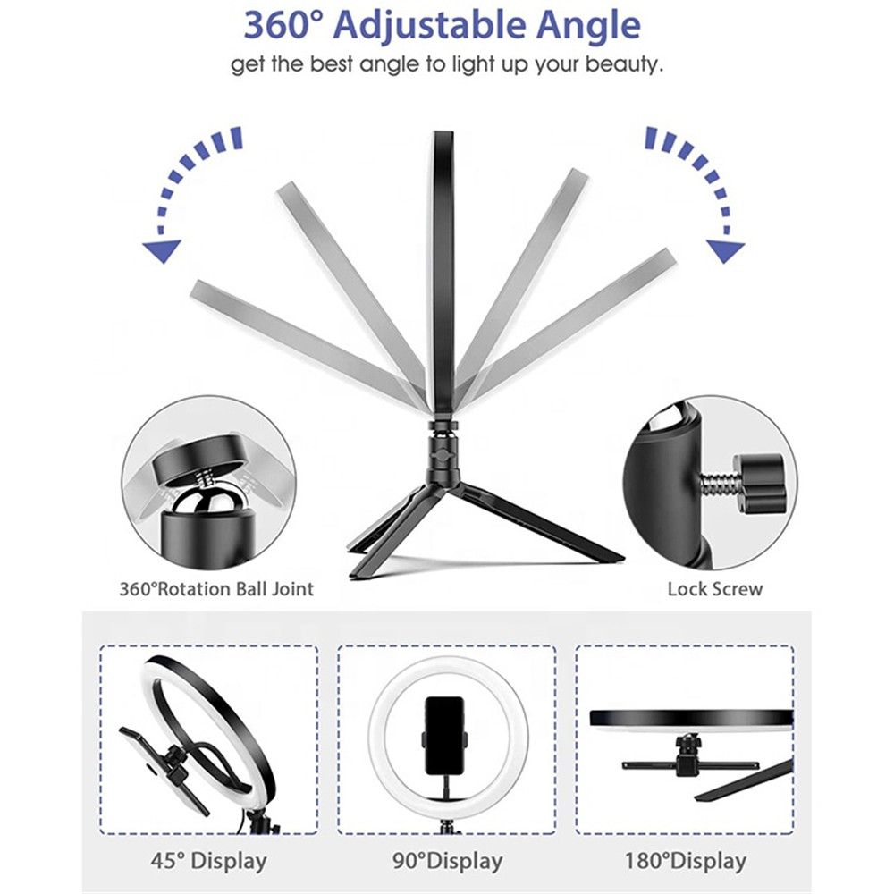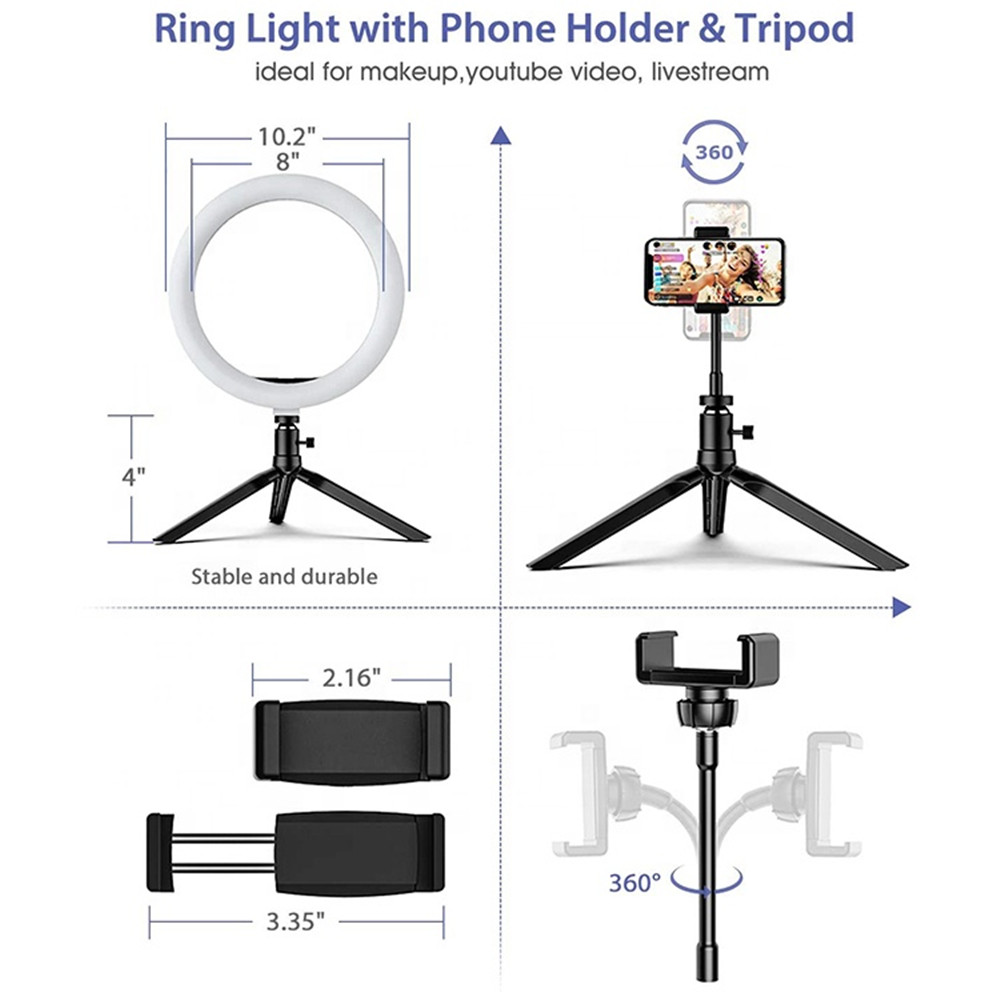 | Nom du Produit | 10 inch Cell Phone Led Lamp Camera Selfie Ringlight Holder Fill Ring Light With Tripod Stand |