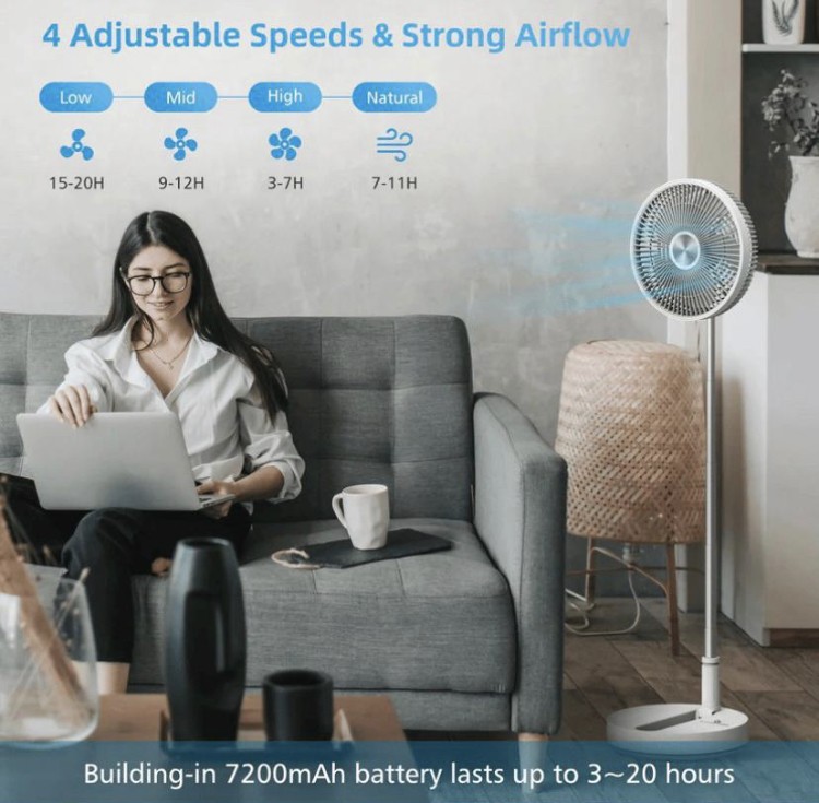 Ventilateur Rechargeable Portatif Ajustable Multifonctions avec Télécommande