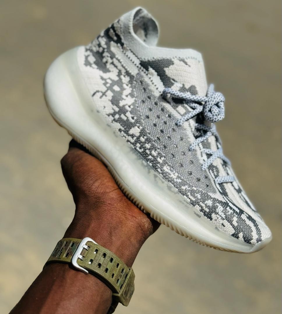 Le Yeezy 380 Onyx présente une tige Primeknit à imprimé camouflage noir et marron foncé avec une tache latérale plate noire. Semblable aux coloris précédents, une semelle BOOST translucide foncée offre une expérience d'amorti ultime conçue pour garder vos pieds frais avec style.